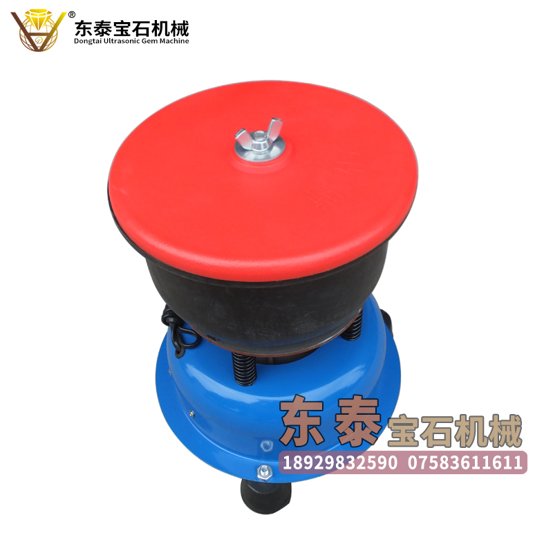 東泰超聲波寶石機械生產的PU膠震桶,使用PU膠直接澆鑄于震桶外殼,無縫隙,震動效果好,PU膠耐磨性強,使用壽命長。